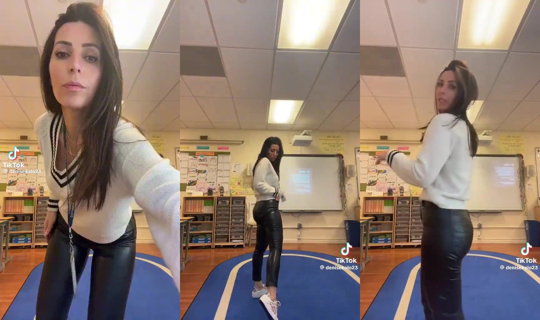 A teacher posted a video showing herself wearing fitted faux-leather pants and a cashmere sweater in her classroom, asking whether her outfit broke the school’s dress code. Then her video quickly went viral and ignited debate about what’s considered professional attire for schools.