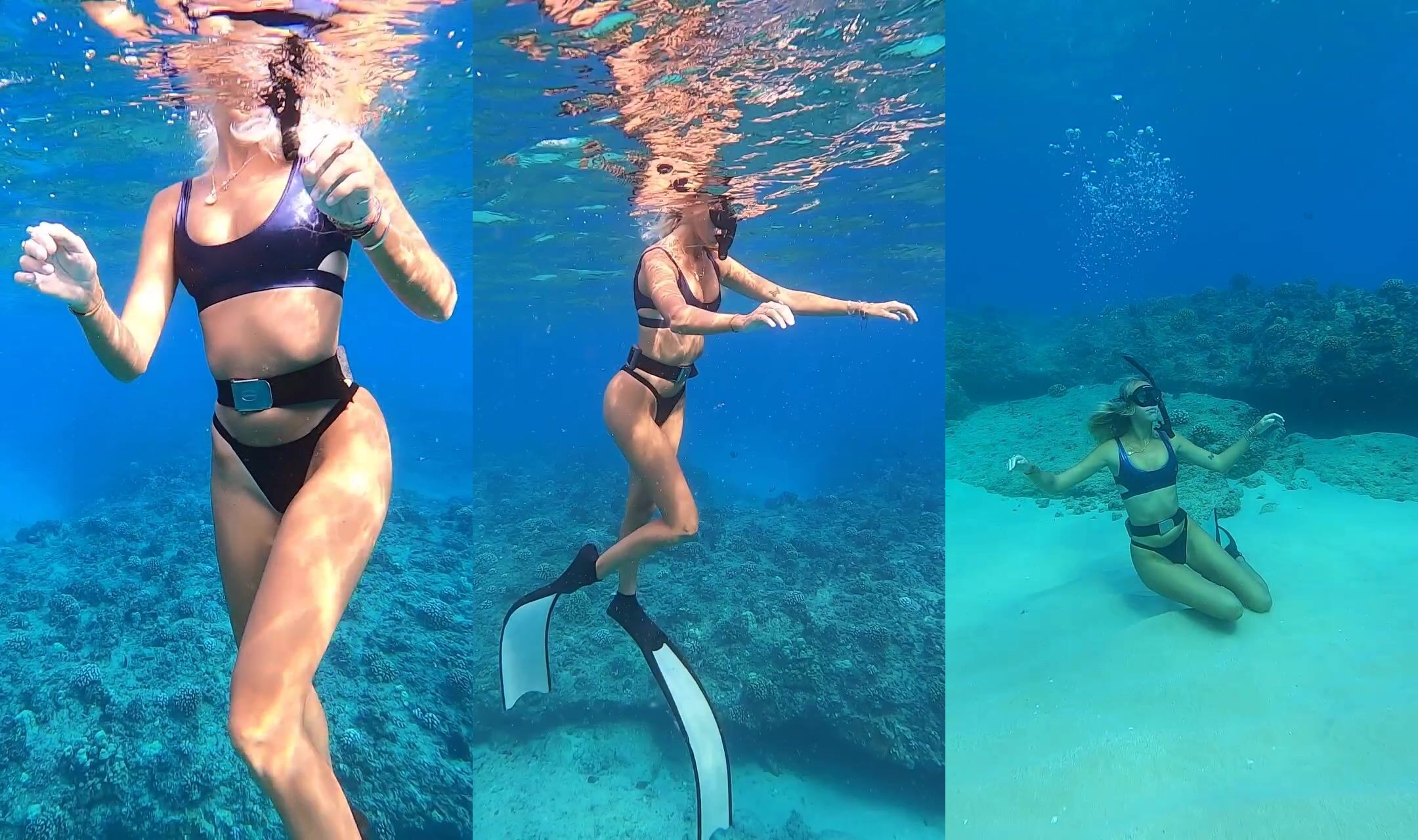 Deep diving in the ocean and looking for sea creatures.