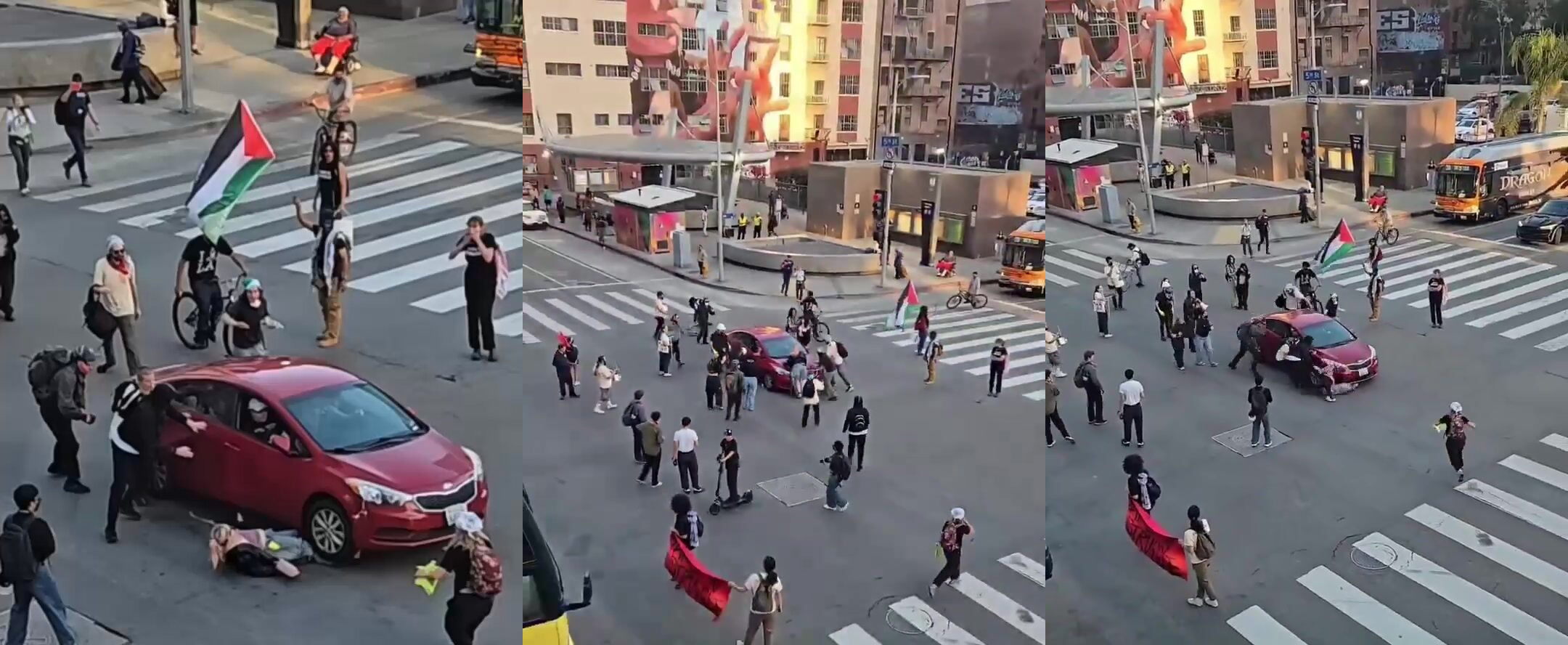 Protester gets ran over while trying to stop a vehicle